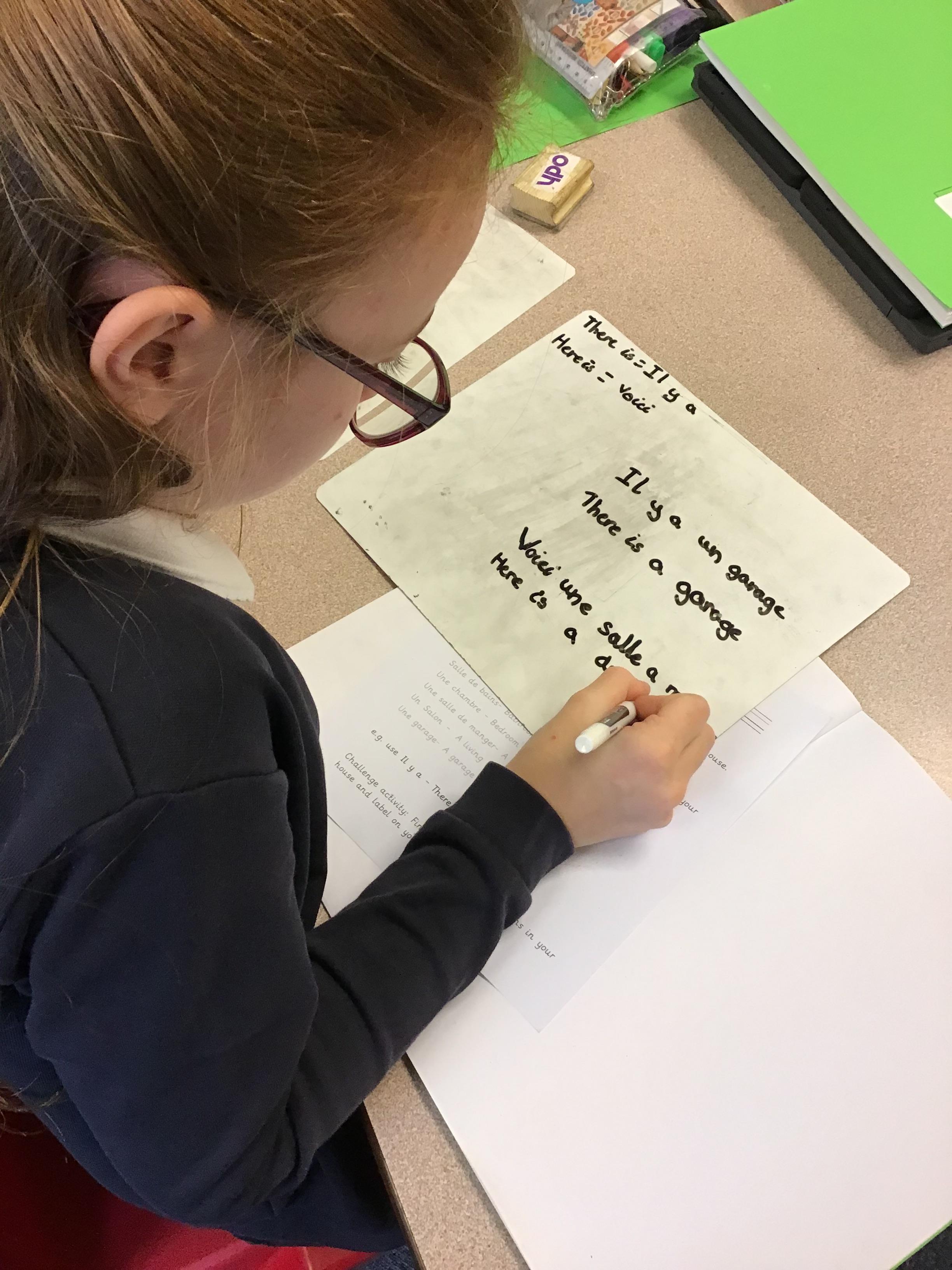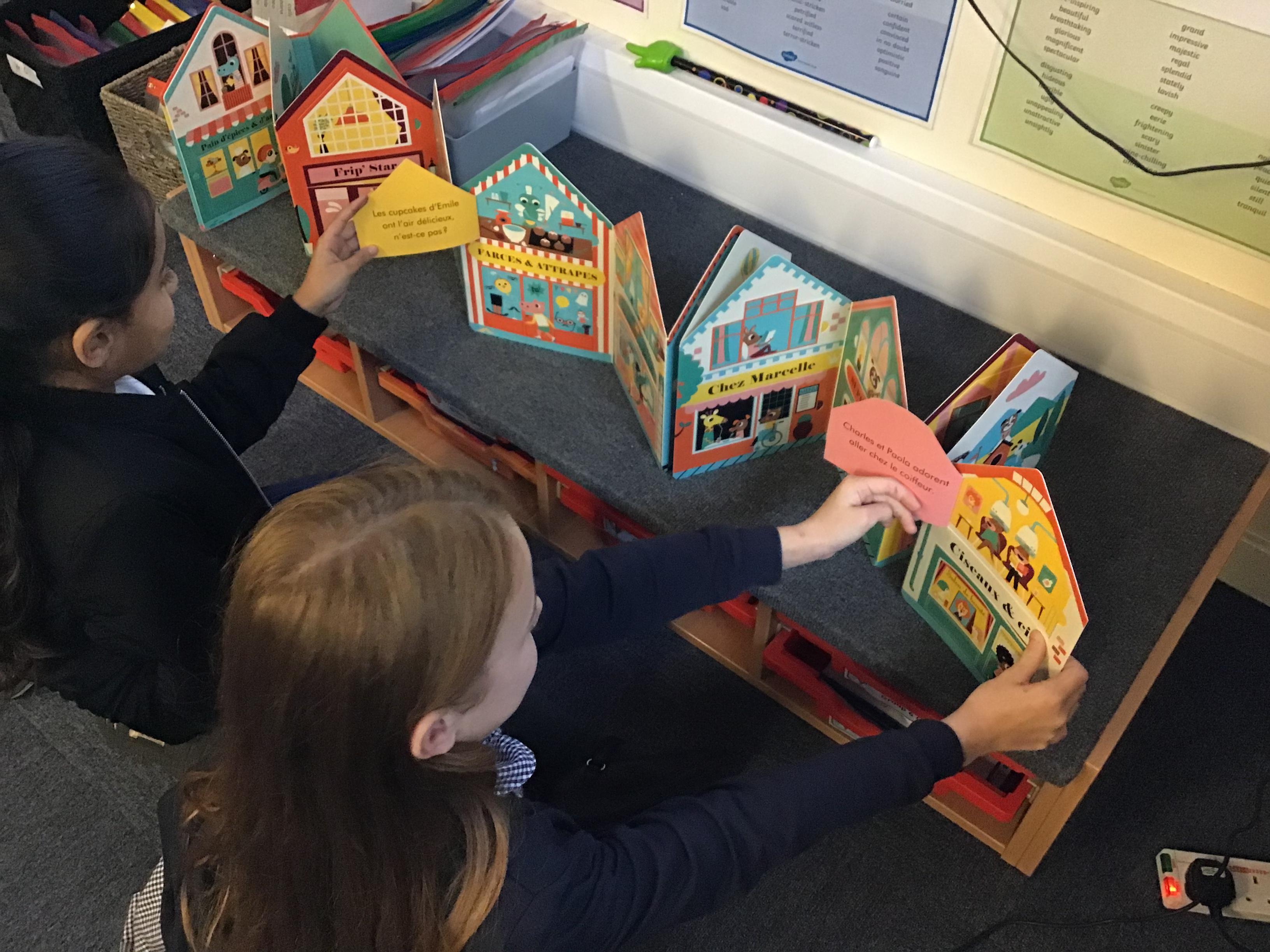 French is taught in discrete half hour sessions by teachers in Year Groups. Lessons are based on "La Jolie Ronde" and include learning in phonics, grammar and sentence structure, as well as cultural knowledge and appreciation. Each lesson is designed to build on the last and progress the children from using phonics to speak single words to listening or reading them and finally using those words correctly within sentences (either spoken or written).